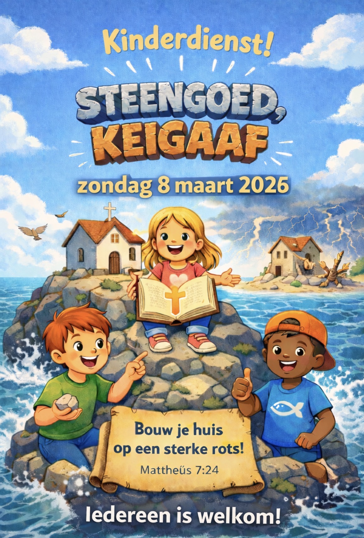 Voor de hele gemeente, en in het bijzonder voor alle kinderen van de basisschool, wordt er op zondag 8 maart een kinderdienst gehouden. Het thema is ‘Bouw je huis...